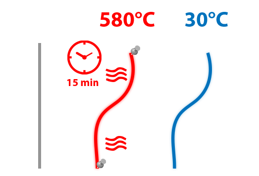 בינו לבין חוט טיטניום רגיל. כעת, ניתן לקבוע צורה לניטינול ע״י קיבוע לצורה אותה אנו רוצים ל״זכור״, לחמם